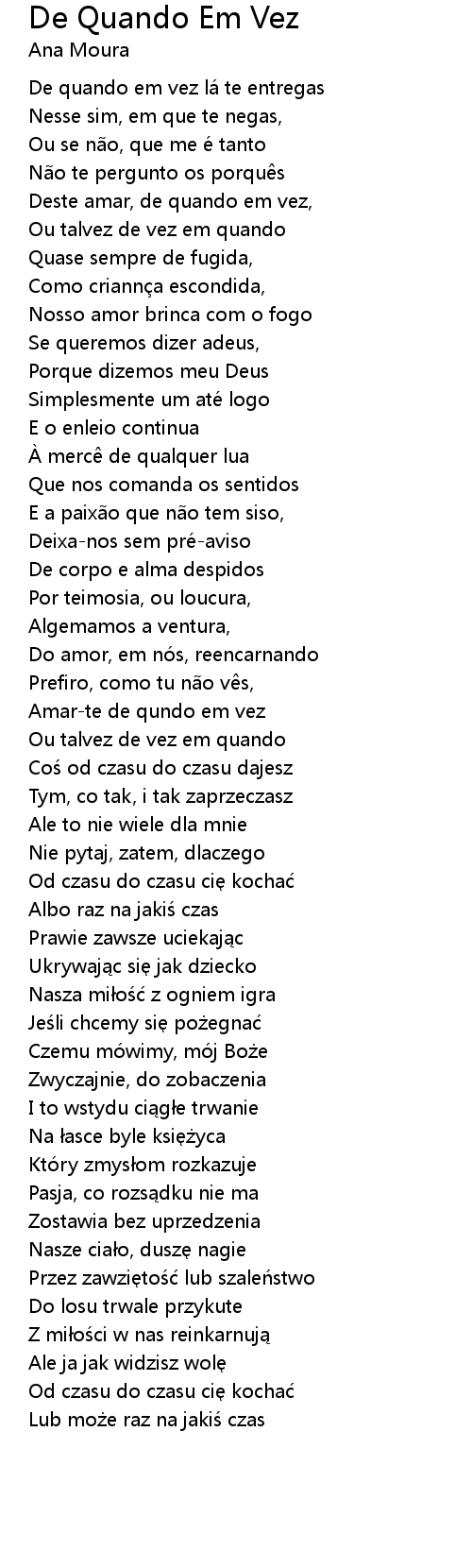 | Song | De Quando Em Vez |