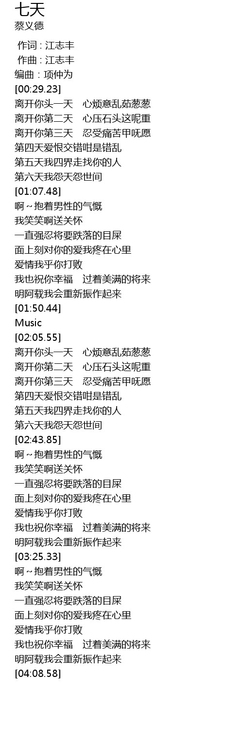 | [00:01.000] | 作曲 : 江志丰 |
