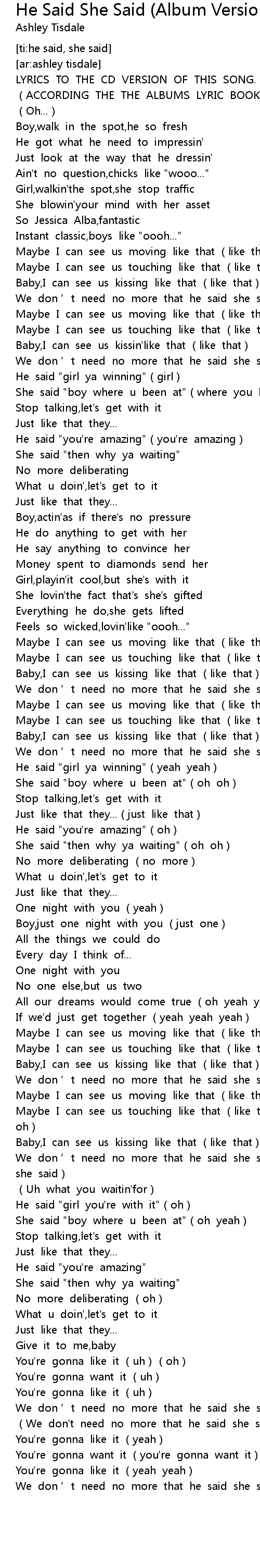 | [02:21.26] | We don ’t need no more that he said she said (he said she said) |