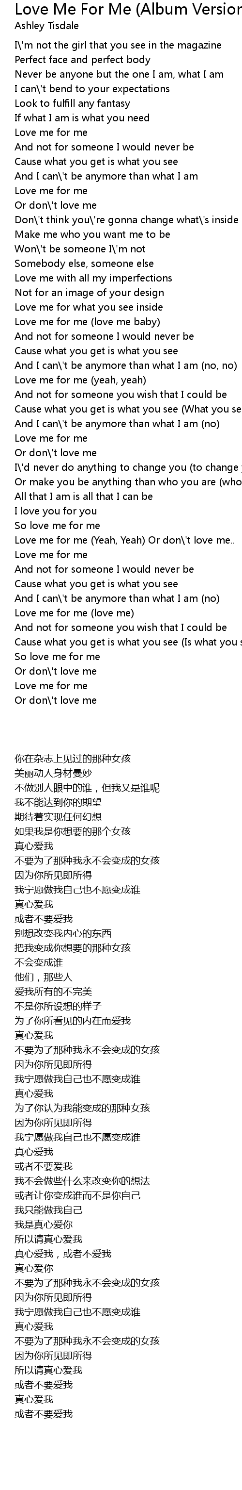 Love me for me (Yeah, Yeah) Or don\'t love me.. |