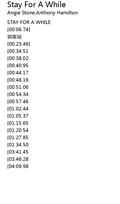 | [03:14.09][01:15.65] | STAY FOR A WHILE |
