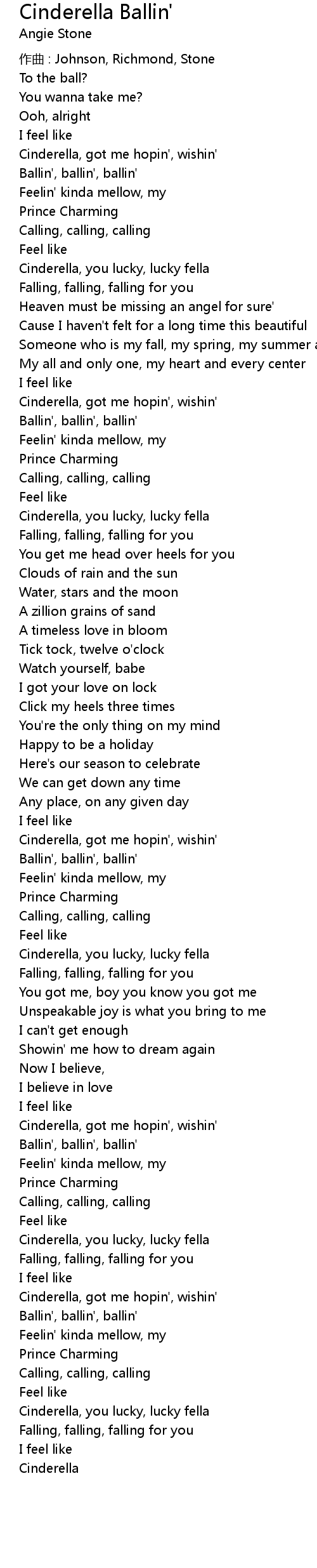 | Cinderella, you lucky, lucky fella | |