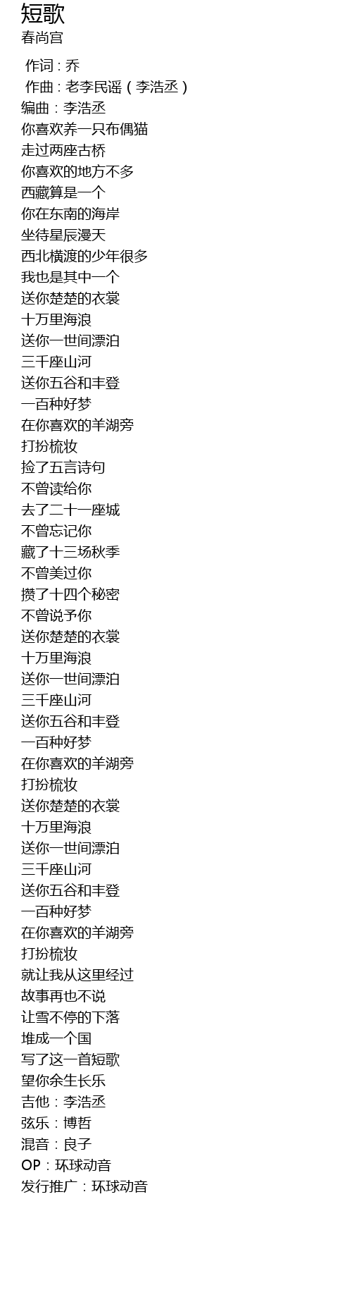 | [00:01.000] | 作曲 : 老李民谣(李浩丞) |