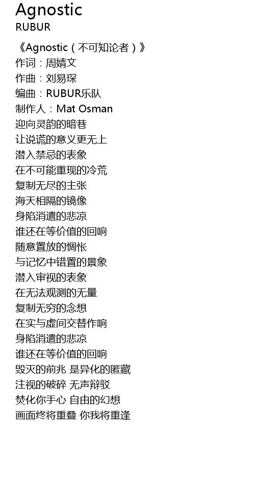 | 《Agnostic(不可知论者)》 | |