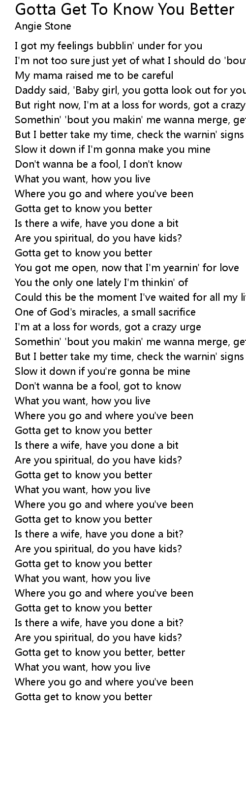 Gotta get to know you better |
