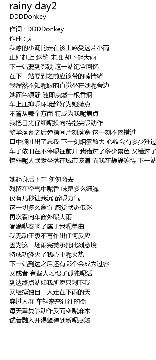| 正好赶上 这趟 末班 却下起大雨 | |