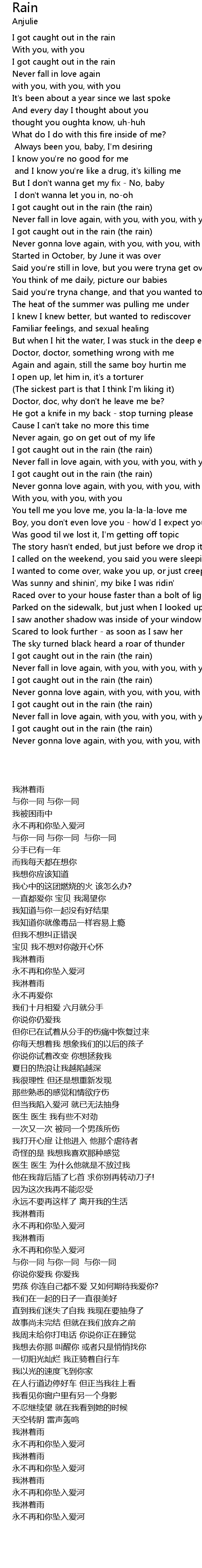 | [00:49.120] | I got caught out in the rain (the rain) |