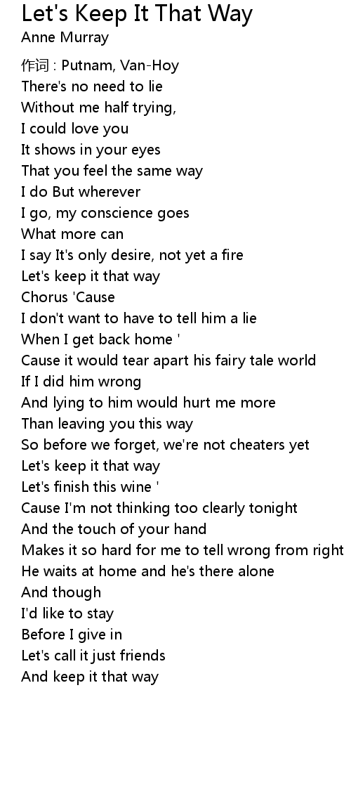 | Let' s keep it that way | |