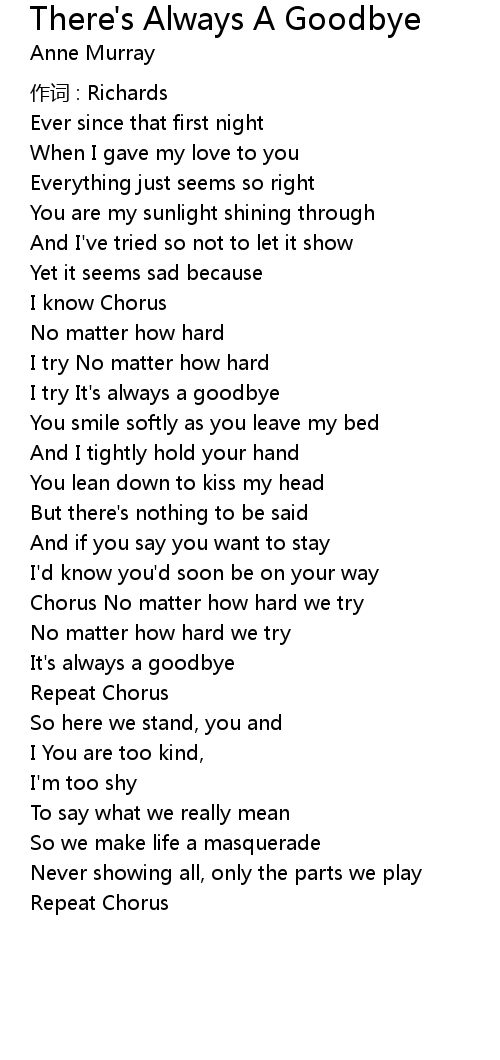 | It' s always a goodbye | |