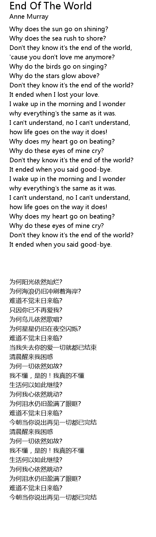 Don't they know it's the end of the world, |