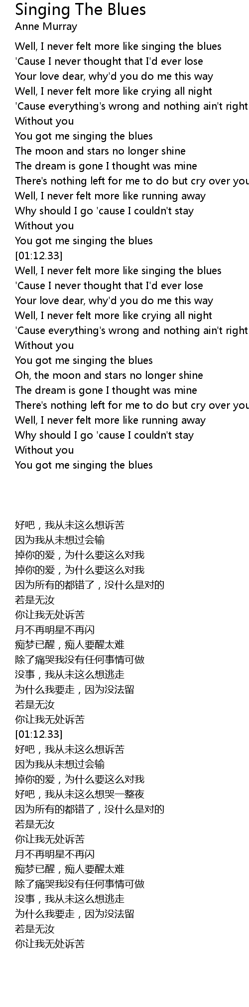 Well, I never felt more like singing the blues |