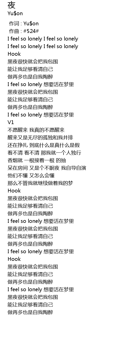 | [01:39.950] | I feel so lonely 想要活在梦里 |