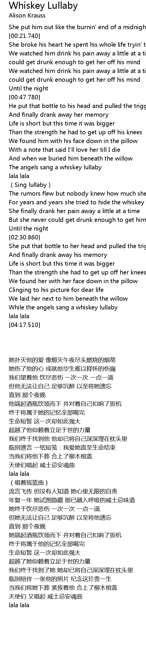 | [01:33.590] | The angels sang a whiskey lullaby |