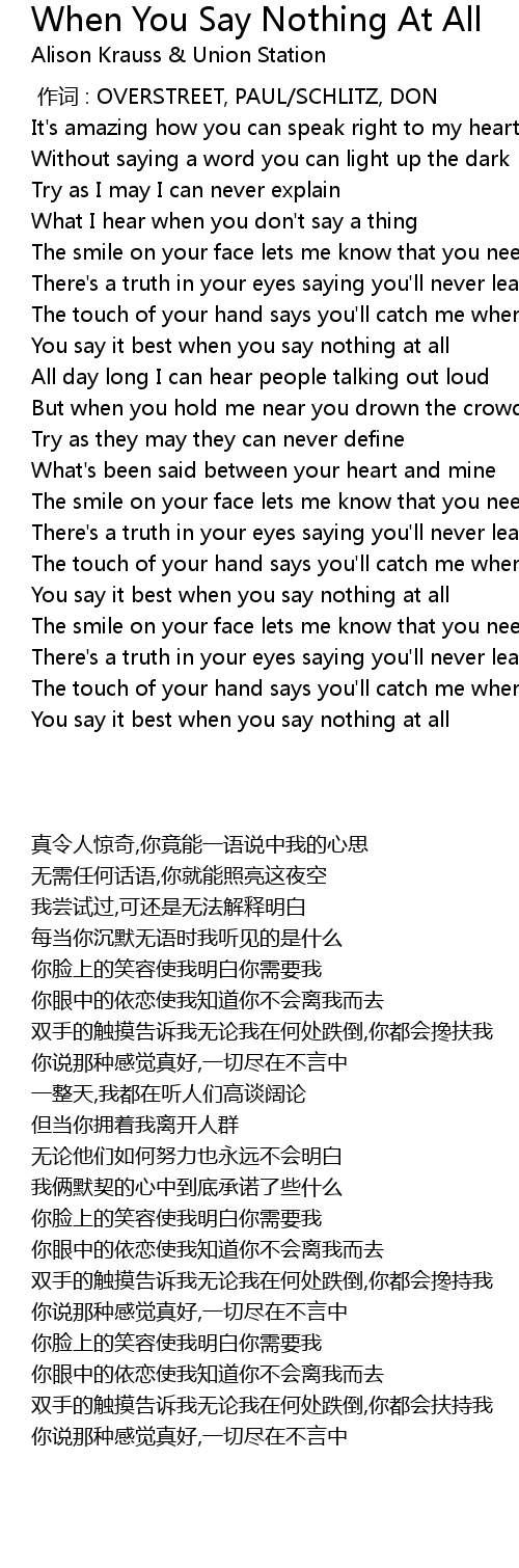 | [01:14.500] | You say it best when you say nothing at all |