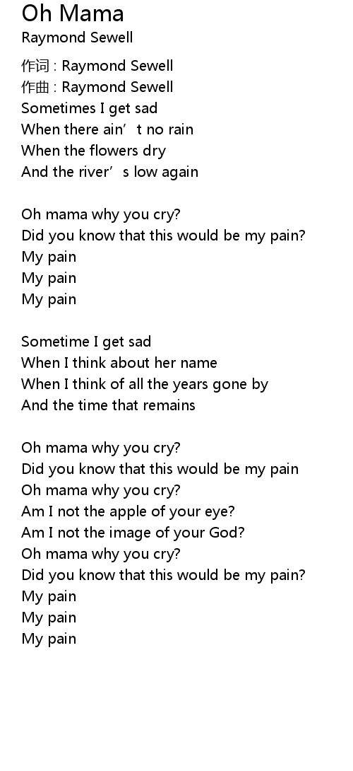 | Oh mama why you cry? | |