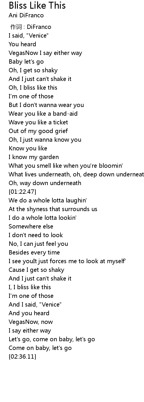 | [00:38.26] | Oh, I bliss like this |