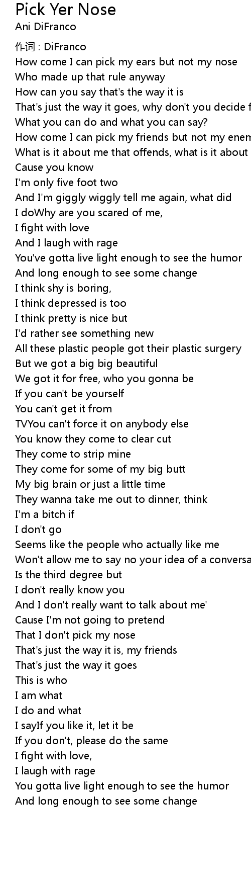 | Song | Pick Yer Nose |