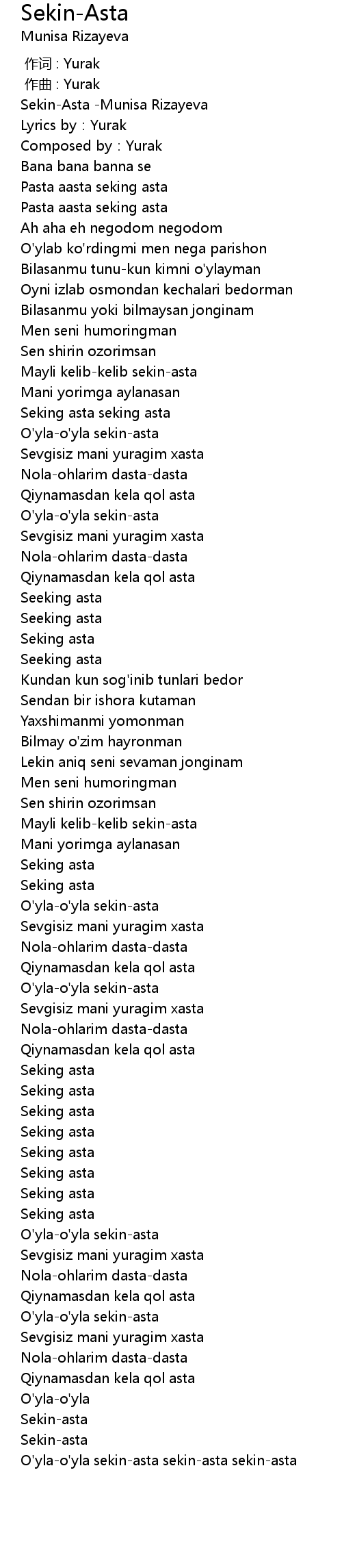 | [00:00.390] | Sekin-Asta -Munisa Rizayeva |
