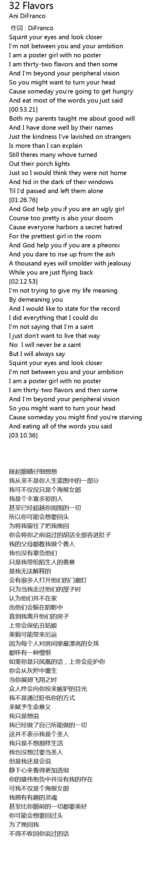 | [02:53.21] | I am thirty-two flavors and then some |