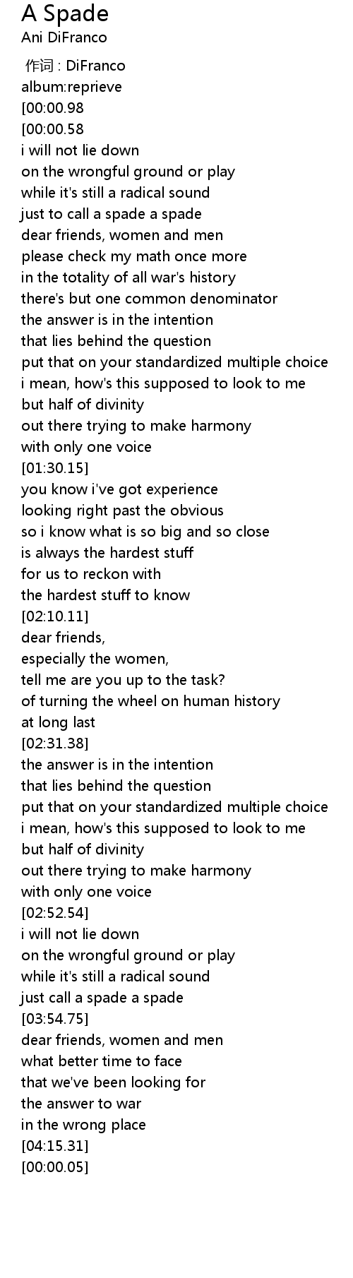 | [04:16.29][00:00.98] | ani difrancoa spade |