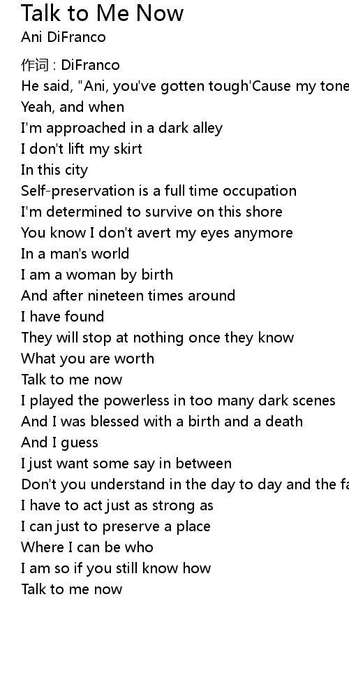 | He said, " Ani, you' ve gotten tough' Cause my tone was curt" | |