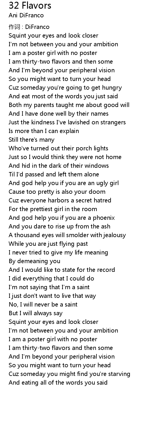 | Song | 32 Flavors |