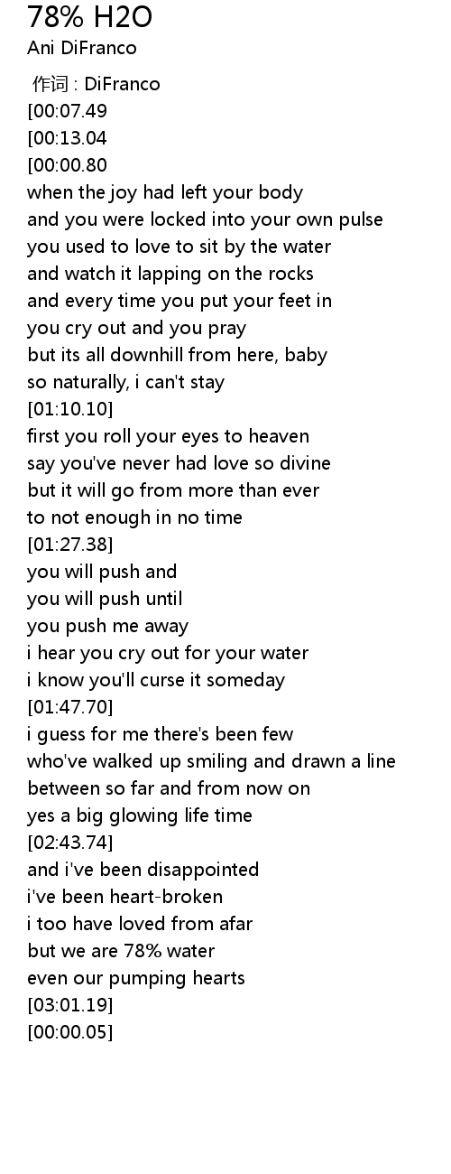 | [03:02.77][00:13.04] | ani difranco78 h2o |