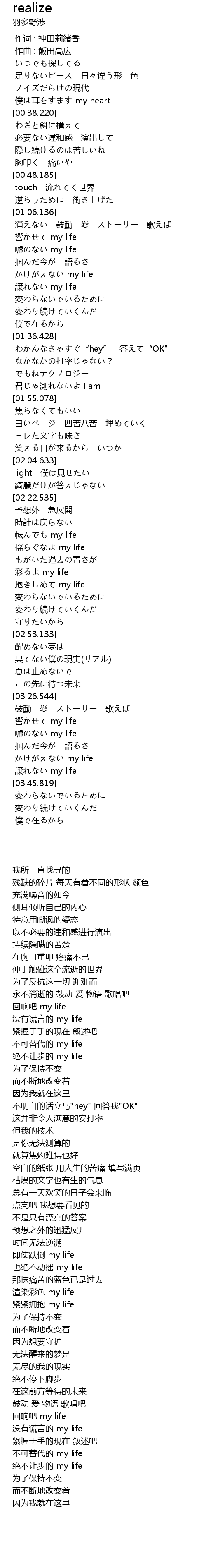 | [03:41.310] | かけがえない my life |