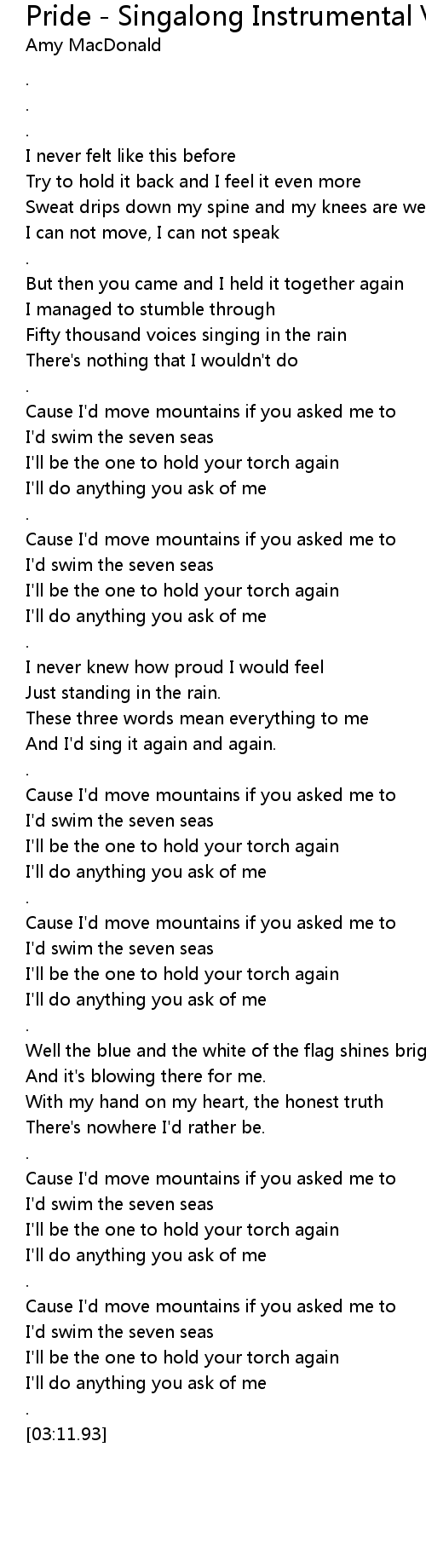 Pride - Singalong Instrumental Version Lyrics