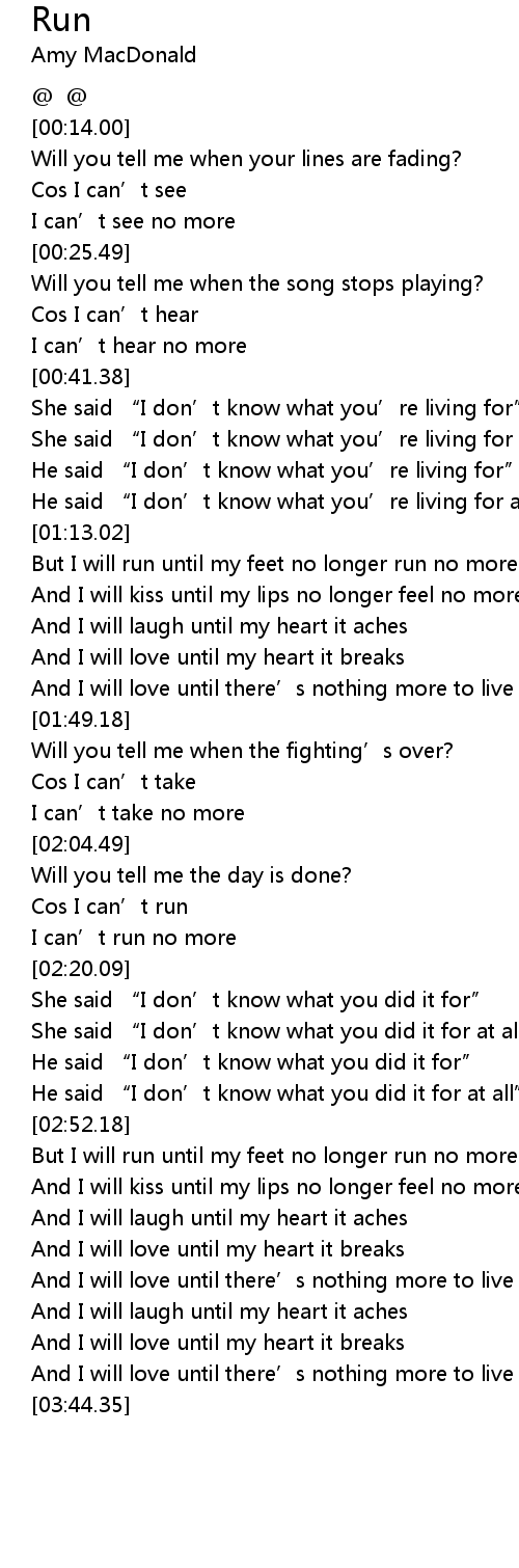 | [01:18.27] | But I will run until my feet no longer run no more |
