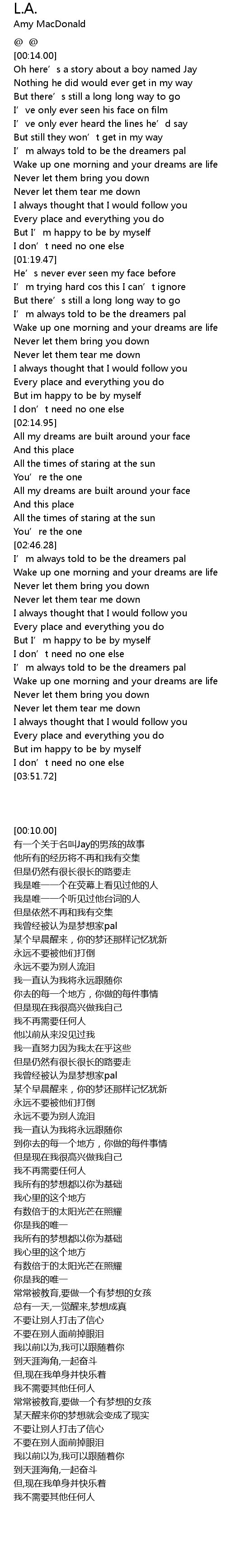 | [03:18.70] | I' m always told to be the dreamers pal |