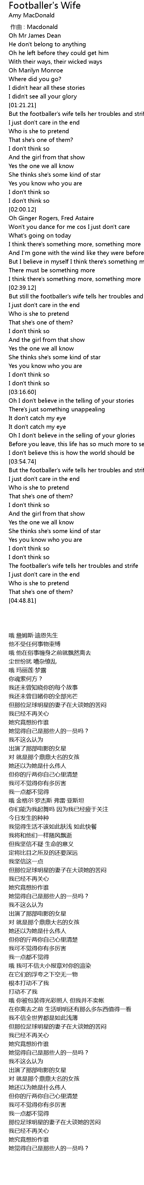 | [03:56.80] | But the footballer' s wife tells her troubles and strife |
