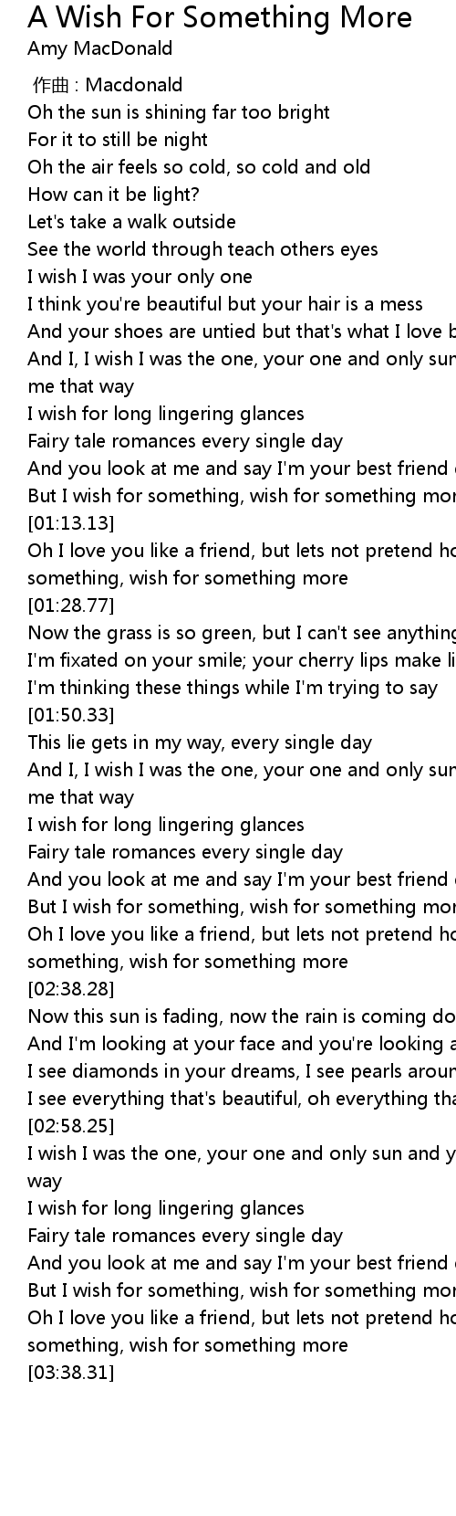| [03:21.92] | But I wish for something, wish for something more |