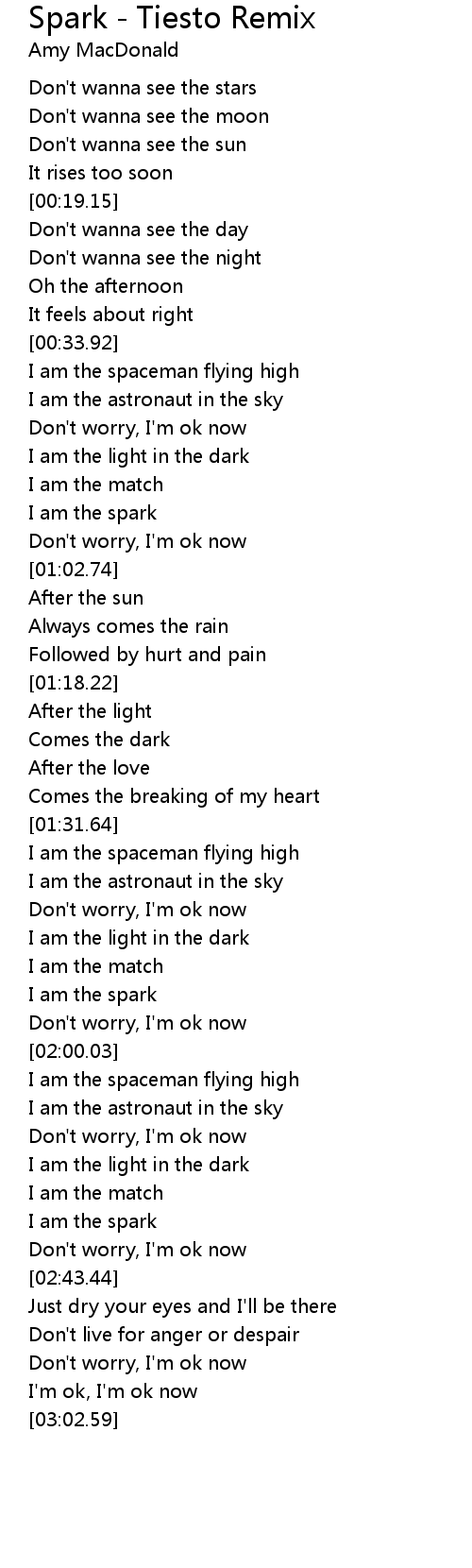 Spark - Tiesto Remix Lyrics