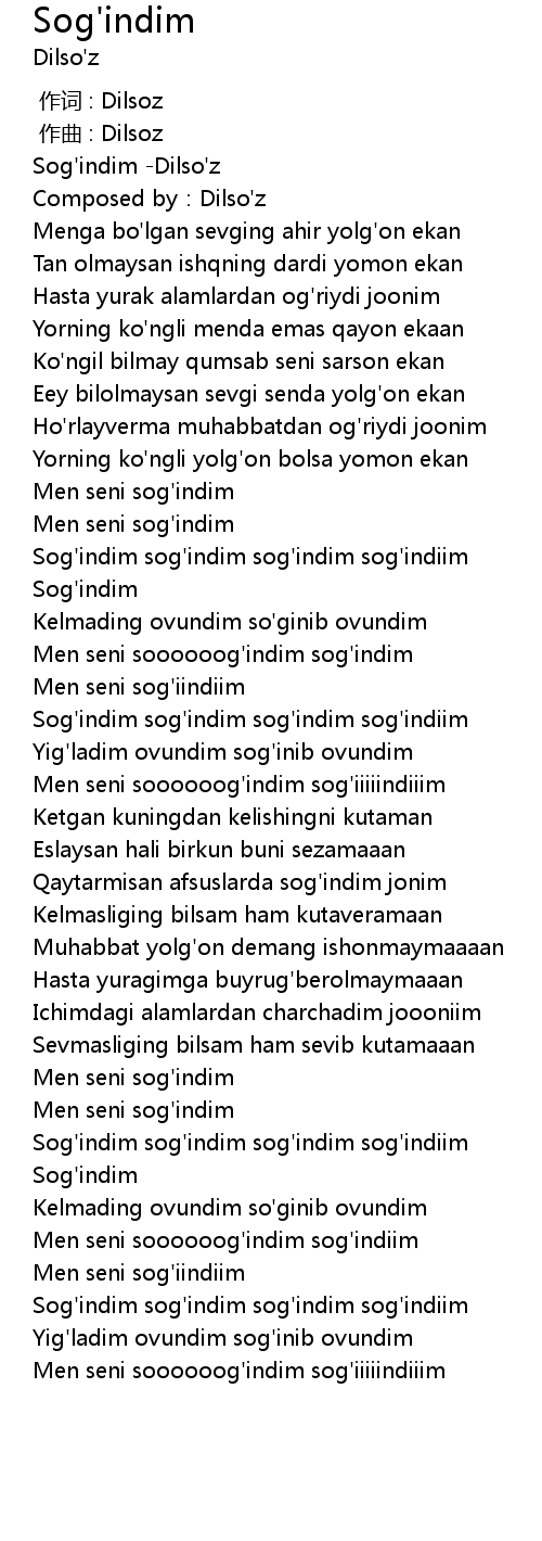 | [02:29.375] | Sog'indim sog'indim sog'indim sog'indiim |