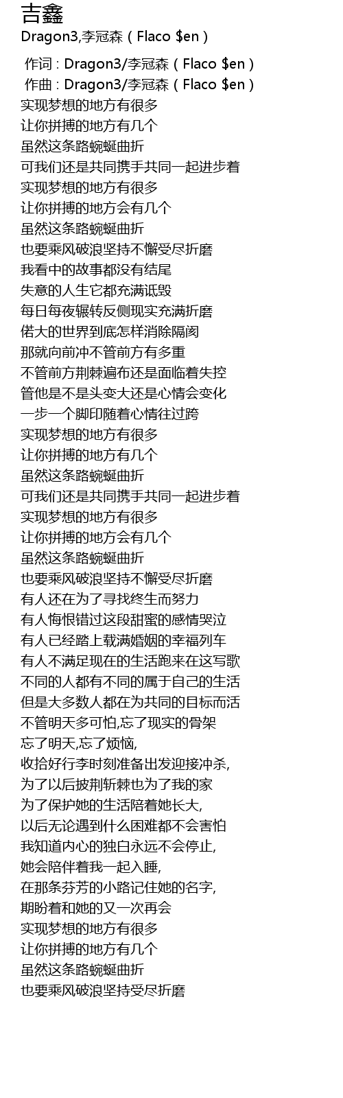 | [00:00.000] | 作词 : Dragon3/李冠森(Flaco $en) |