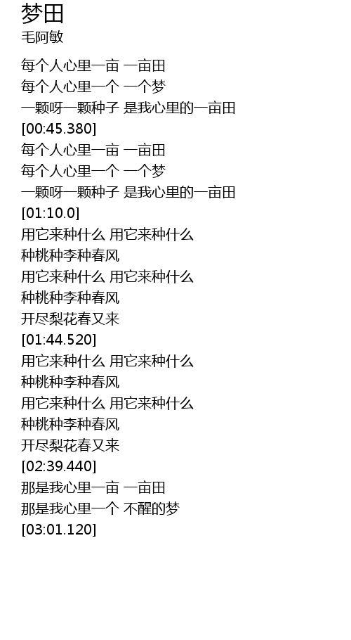 | [00:37.0] | 一颗呀一颗种子 是我心里的一亩田 |