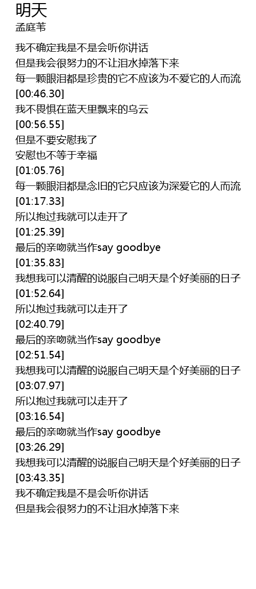 | [01:37.15] | 我想我可以清醒的说服自己明天是个好美丽的日子 |