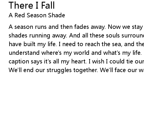 | A season runs and then fades away. Now we stay at home. My colored streets by shades running away. And all these souls surround my all and all these things have built my life. I need to reach the sea, and the sky and these walls to understand where's my world and what's my life. There I find myself again. The caption says it's all my heart. I wish I could tie our hands up you and me. We'll end our struggles together. We'll face our way there. |