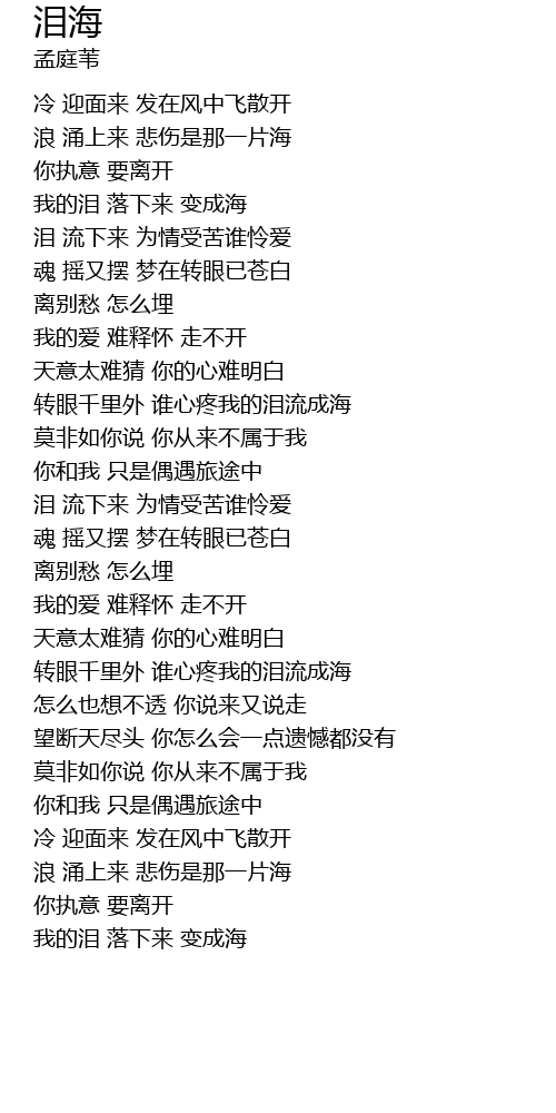 | [01:51.920] | 转眼千里外 谁心疼我的泪流成海 |