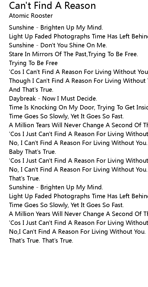 'Cos I Just Can't Find A Reason For Living Without You. |