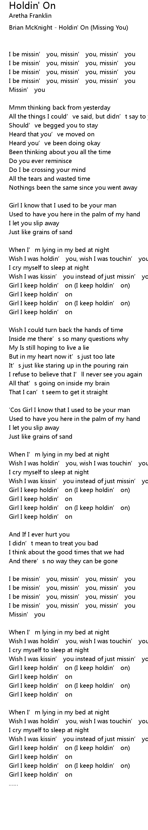 | Girl I keep holdin' on I keep holdin' on | |