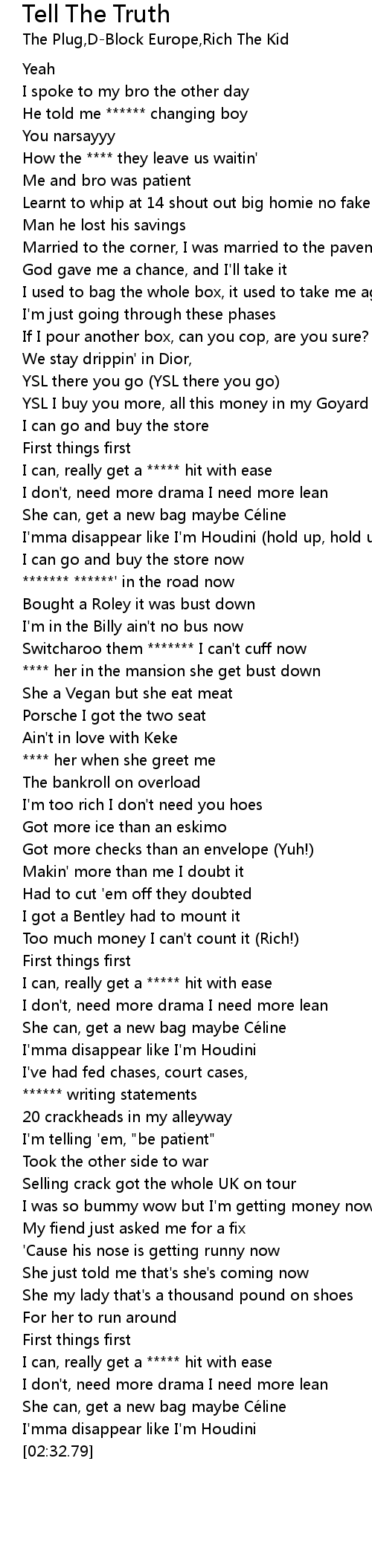 | [01:39.73] | I got a Bentley had to mount it |