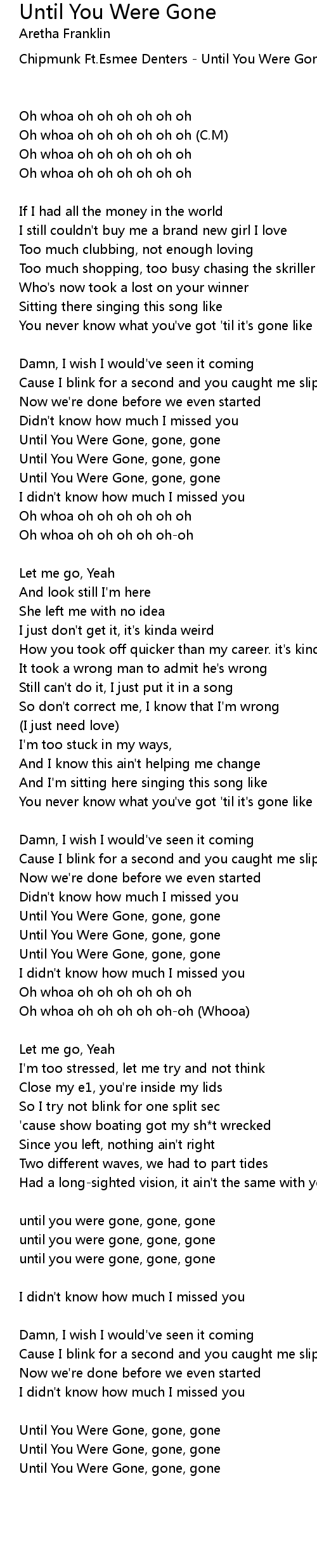Until You Were Gone, gone, gone |