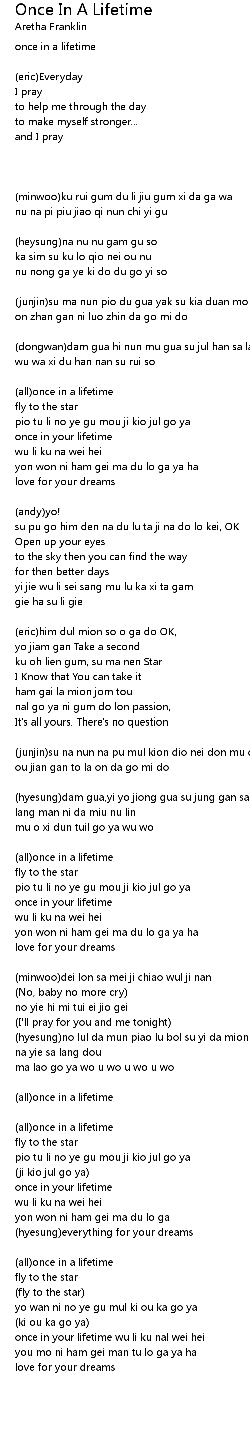 (all)once in a lifetime |
