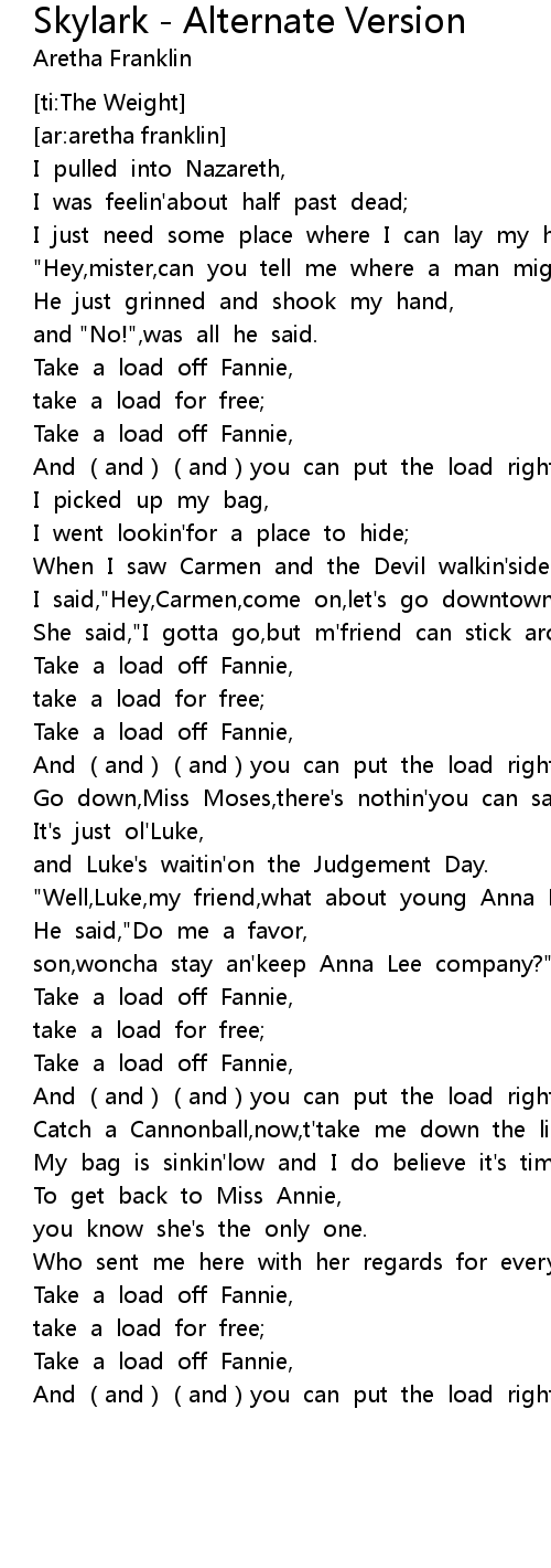 | [02:41.71] | Take a load off Fannie, |