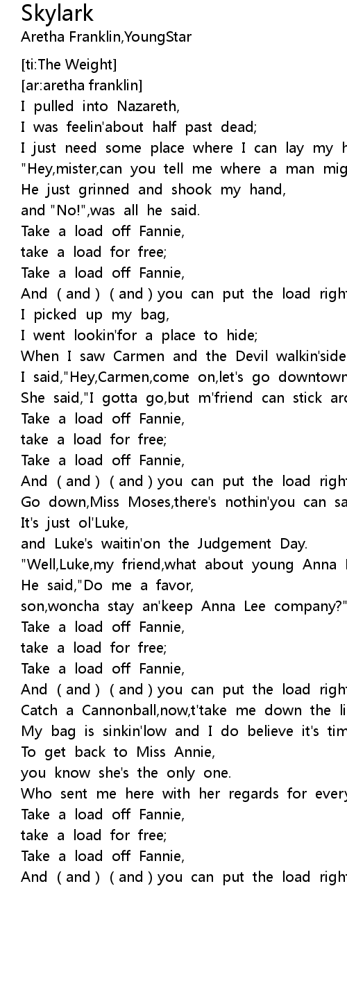 | [01:21.96] | And (and)(and)you can put the load right on me. |