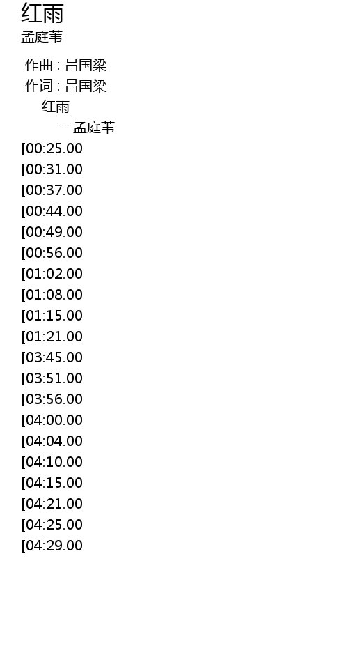 | [05:06.00][04:15.00][01:58.00] | 红红的雨 |