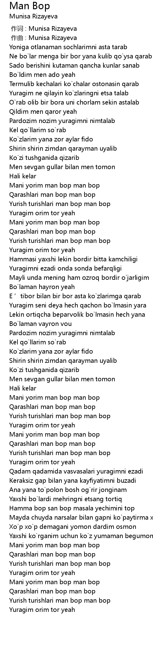 | [00:01.000] | zuò qǔ : Munisa Rizayeva |