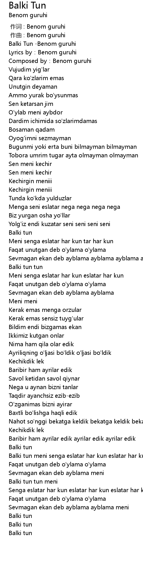 | [03:10.389] | Balki tun meni senga eslatar har kun eslatar har kun |